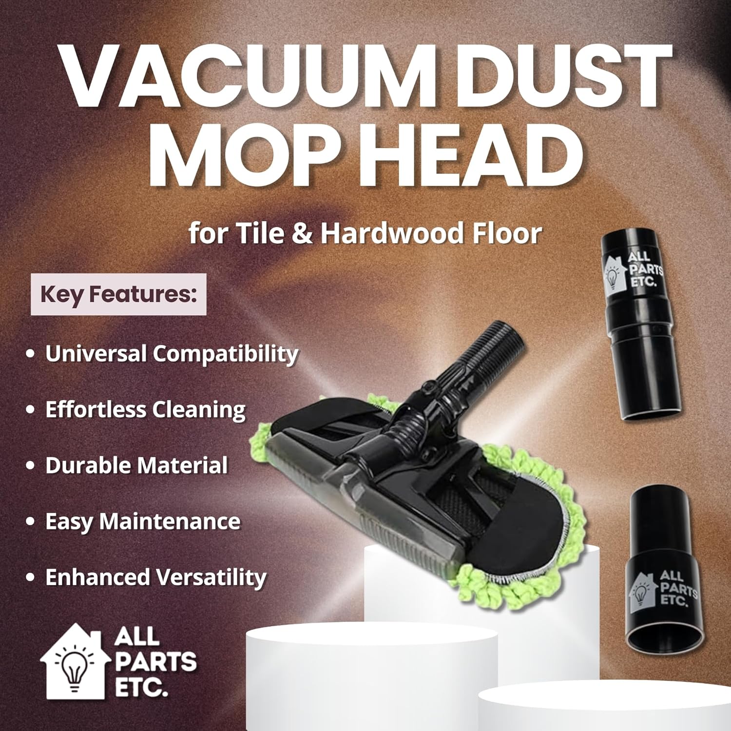 Get Floors Spotless with Versatility: Attach to your 1.25-inch vacuum hose or wand to mop, clean, and dust all in one pass. Ideal for hard floors in homes, offices, and commercial spaces.