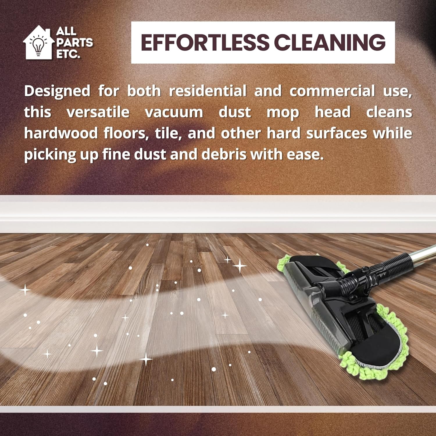 Effortless Floor Cleaning: Designed for both residential and commercial use, this versatile vacuum dust mop head cleans hardwood floors, tile, and other hard surfaces while picking up fine dust and debris with ease.
