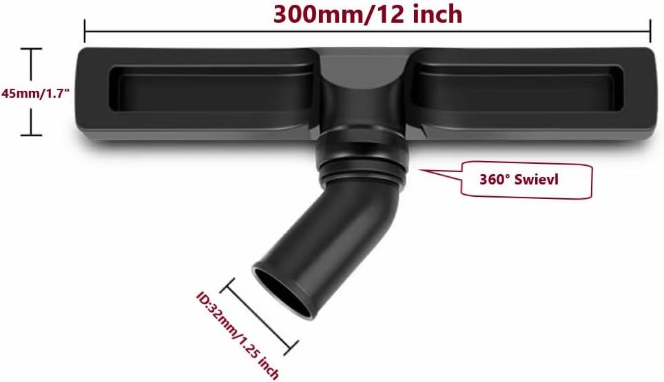 12″ Universal Vacuum Cleaner Attachment 360° Swivel Floor Brush Tool 1.25″ 32mm Floor Brush Tool