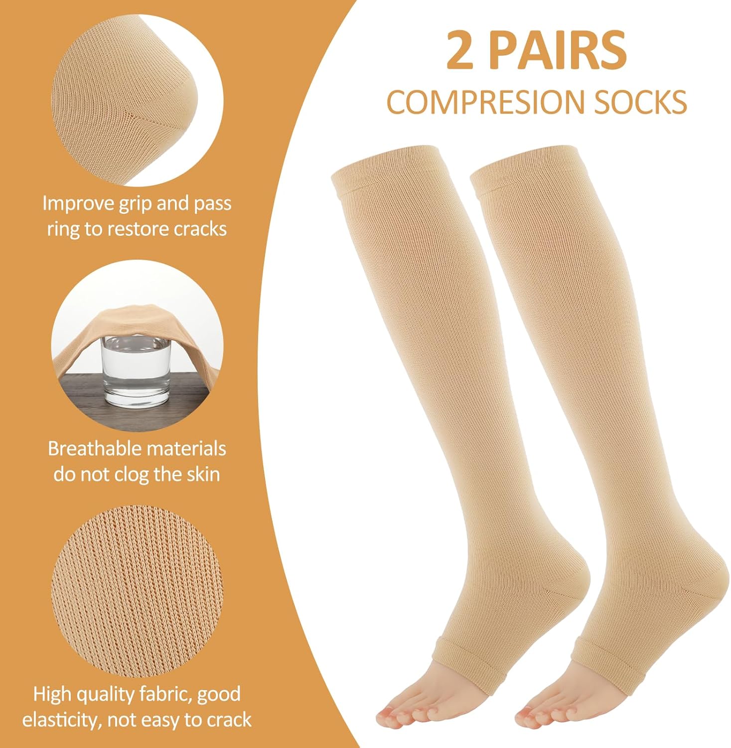 2 pairs – Open toe compression socks
