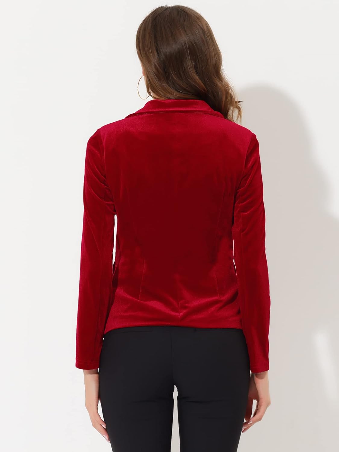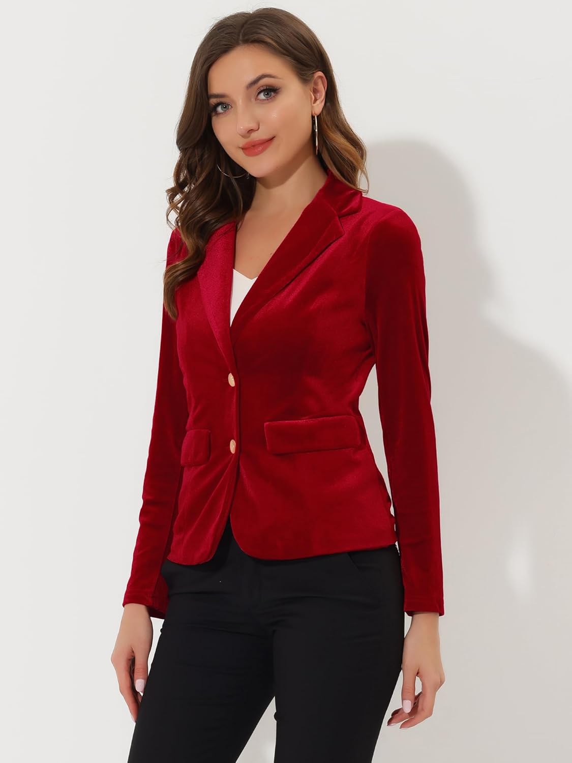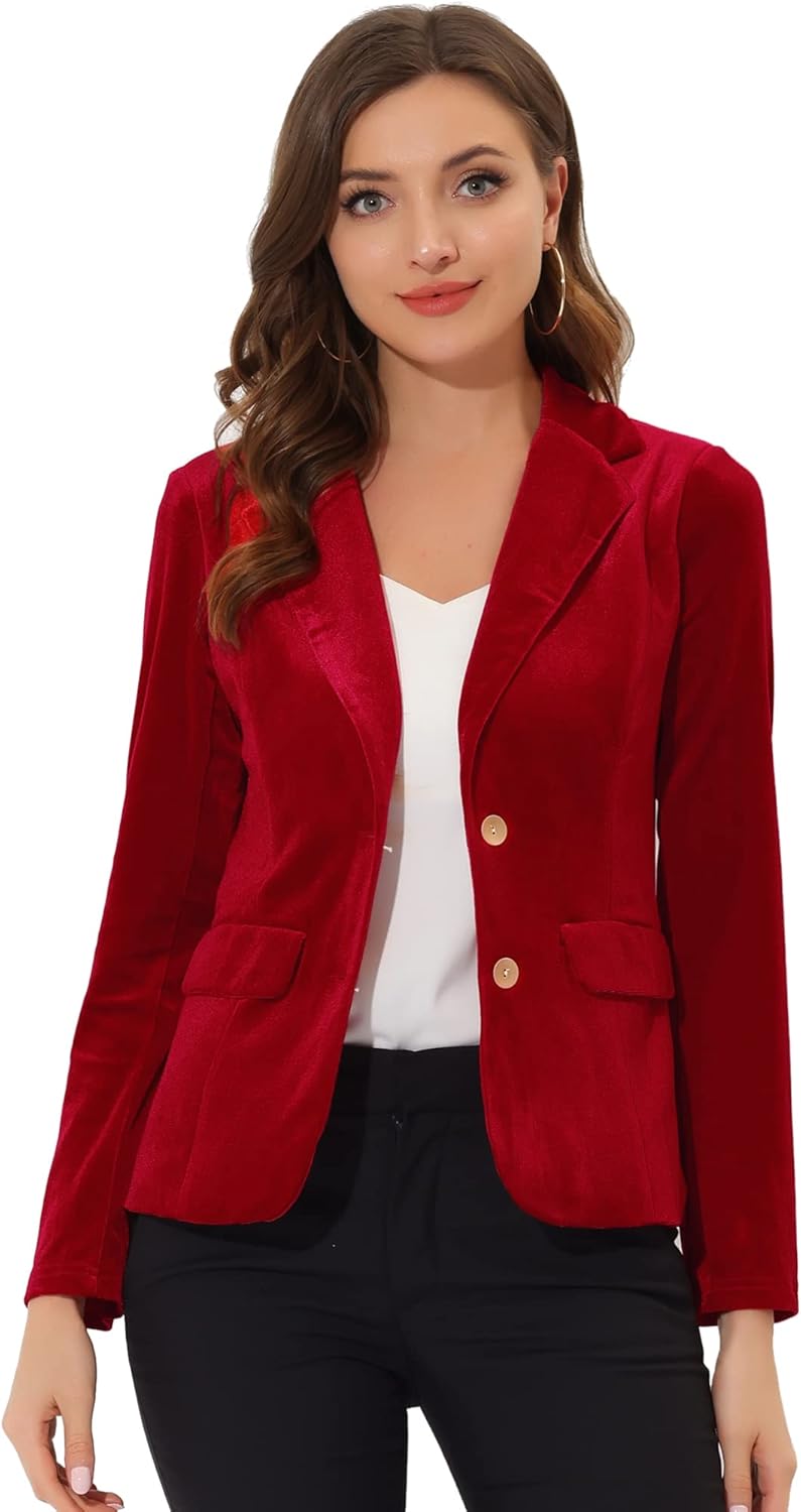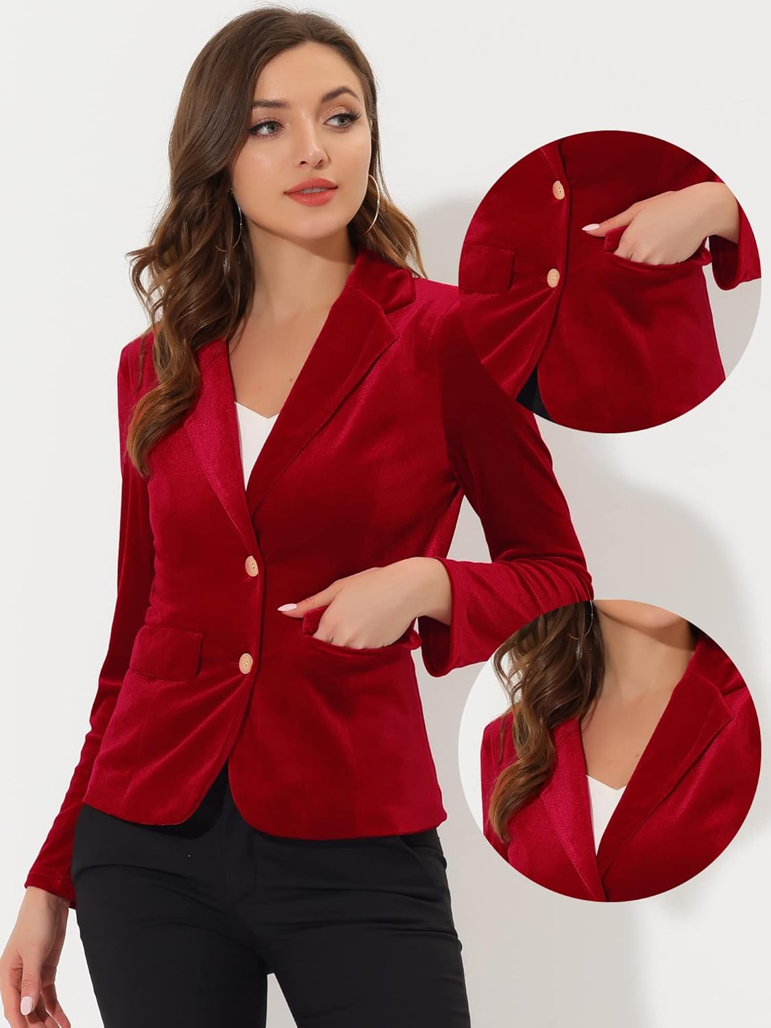 Allegra K Velvet Blazers for Women’s Notched Lapel Two Button Long Sleeve Blazer