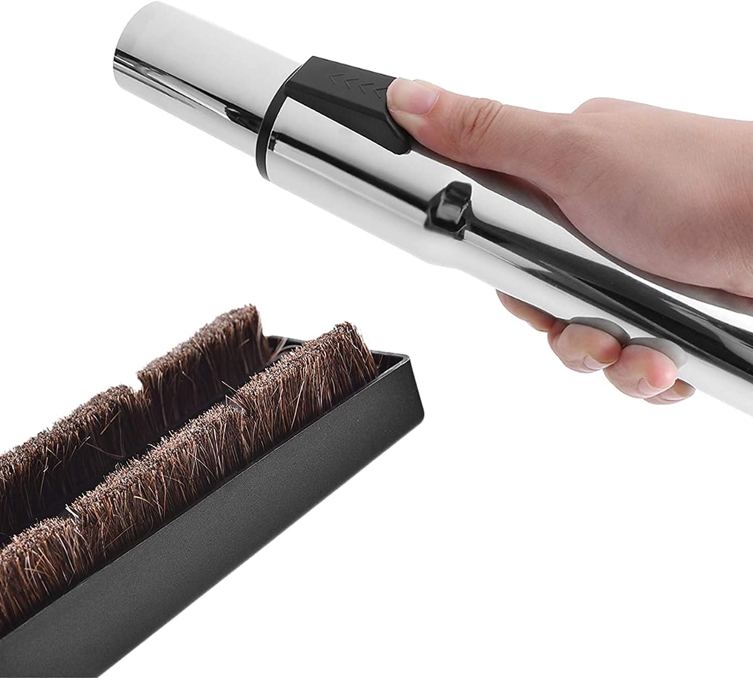 🐼🐼2. The vacuum cleaner brush attachment made of natural horsehair bristles 12″ wide cleaning path made this type of suction head good ideal for absorbs dust and garbage on the ground or wall,expert for wooden floors with no scratching