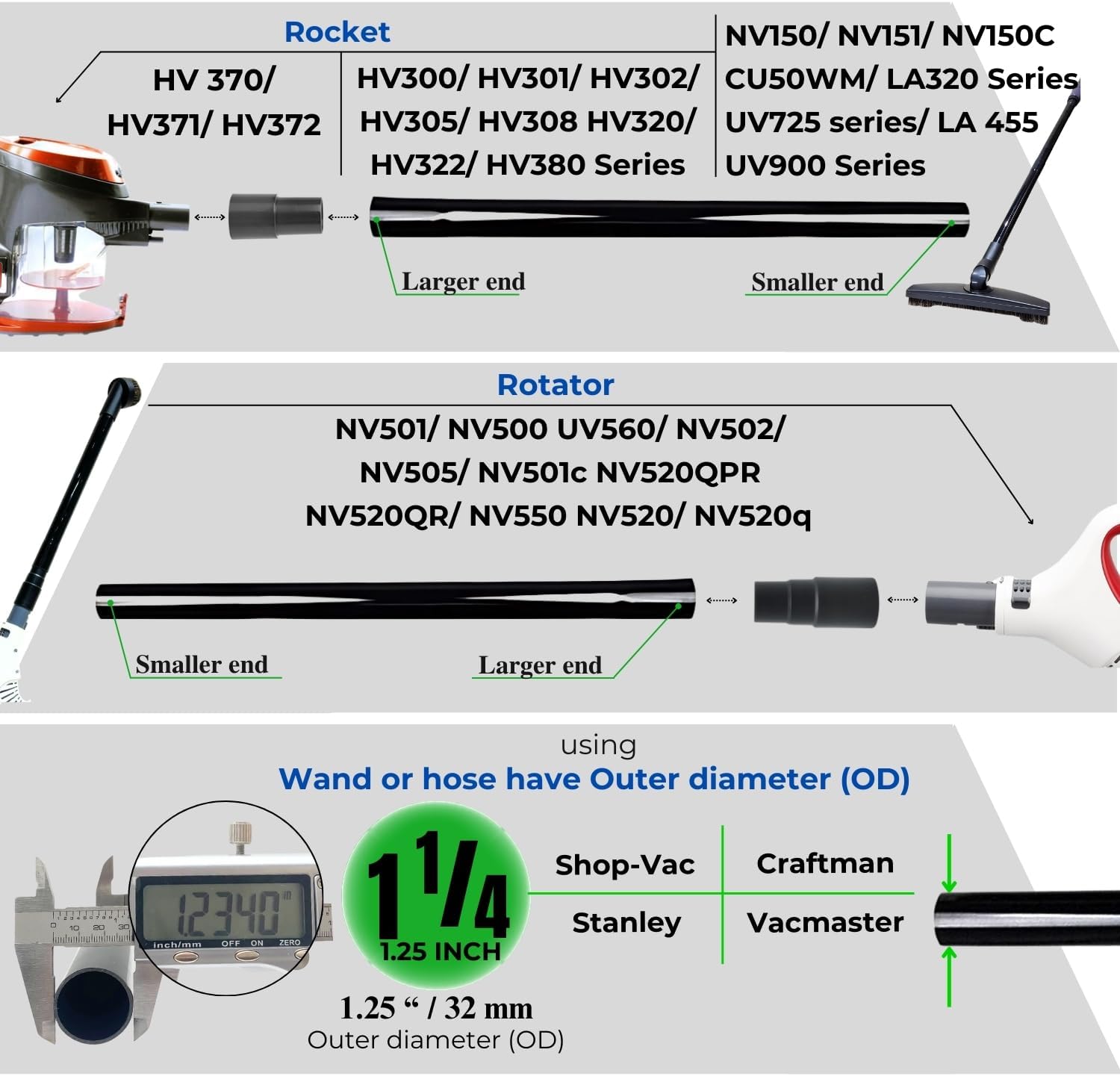 Vacuum Adapter compatible with Shark Rocket HV300 & NV500 series: Adapters helps Shark Rocket HV300 & NV500 series can use 1 1/4” vacuum Accessories.