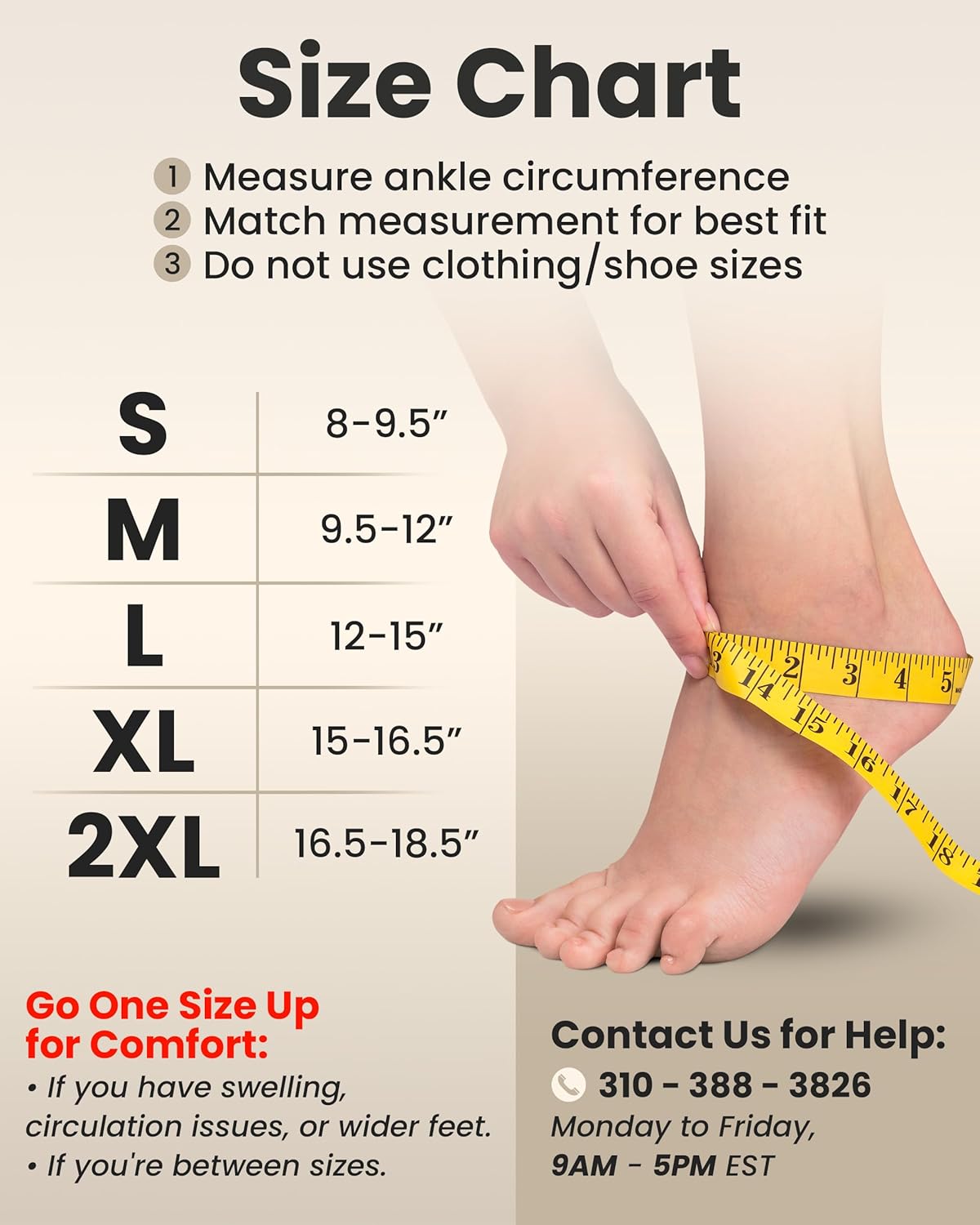 𝗗𝗼𝗻’𝘁 𝗠𝗶𝘀𝘀 – Refer to our socks size chart for accurate sizing instead of using clothing or shoe sizes. Important for L size: The “L” stands for Large, not Left. Our compression sleeves are universal for both feet and can be worn on either the left or right foot