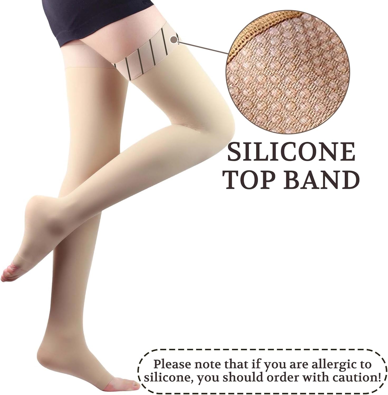 Lin Performance 15-20 mmHg Medical Compression Stockings for Women and Men Thigh High Dot-Top Open Toe Socks for Varicose Vein Swollen legs Travel Flight Pregnant(Beige,XL)