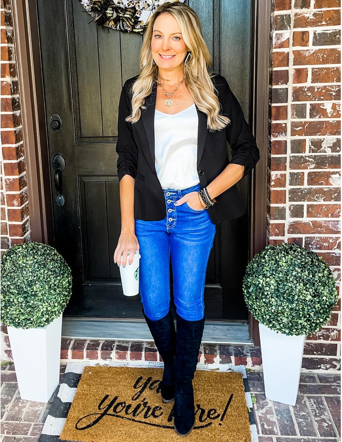 More Fashion Tips about 3/4 Ruched Sleeve Blazers Womens Blazers for Work Casual