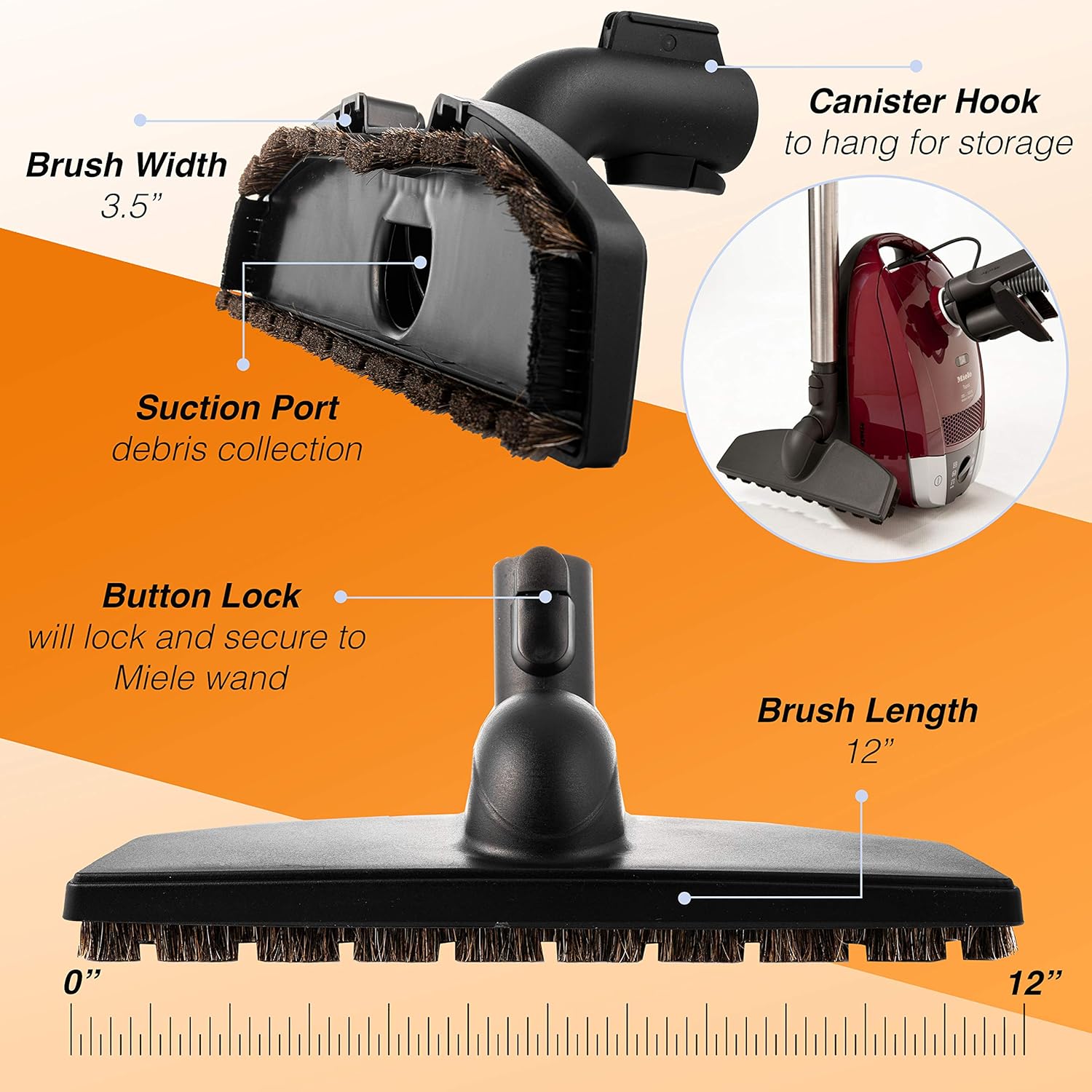 【Generic Miele Parquet brush】Designed for Hardfloor only, not suitable for carpet cleaning. This premium 12 inch replacement for all Miele makes and models will fit any attachment wand or hose for Miele brand, will not fit other standard 1.25in vacuum fitting attachments.