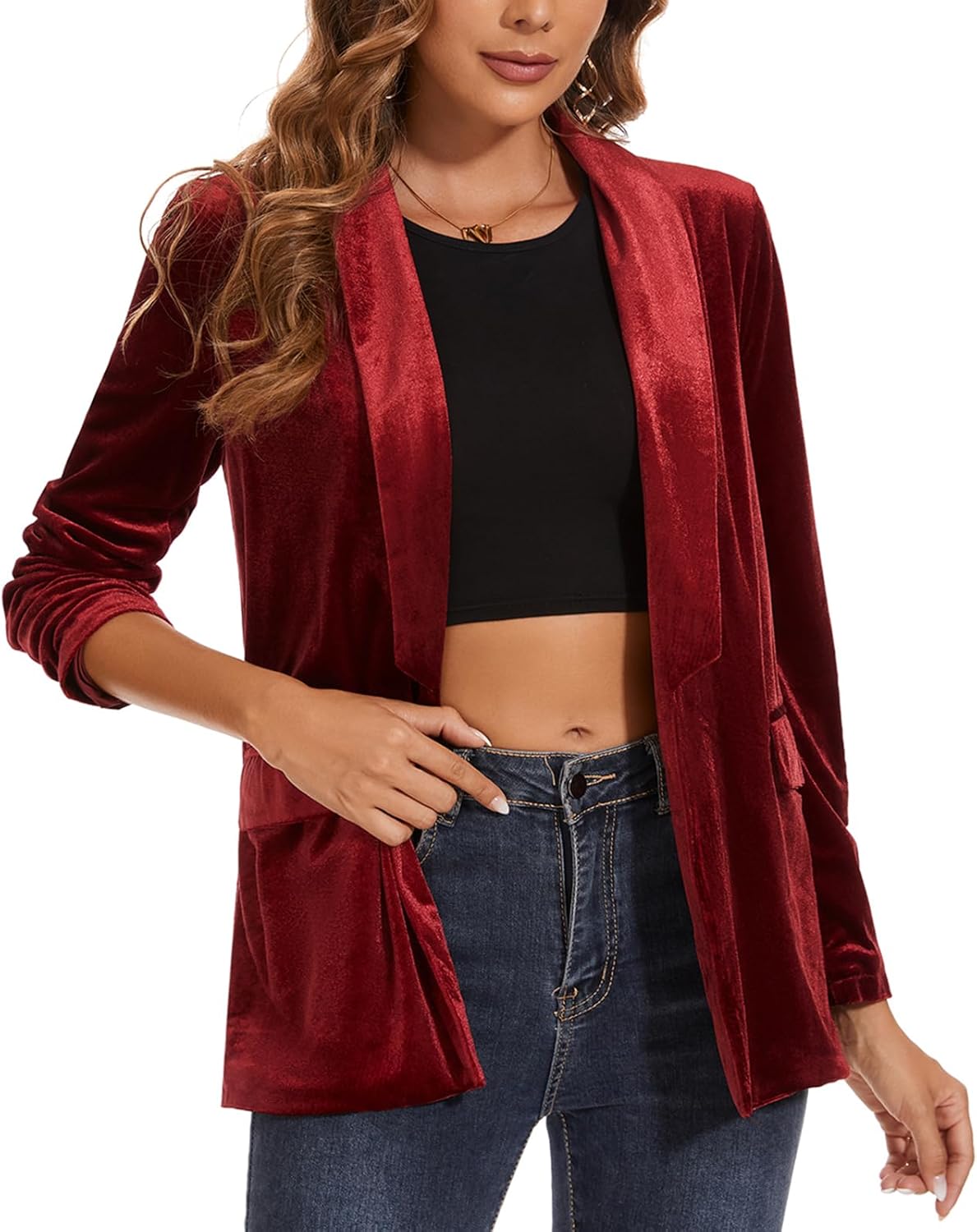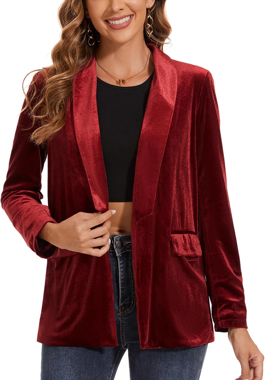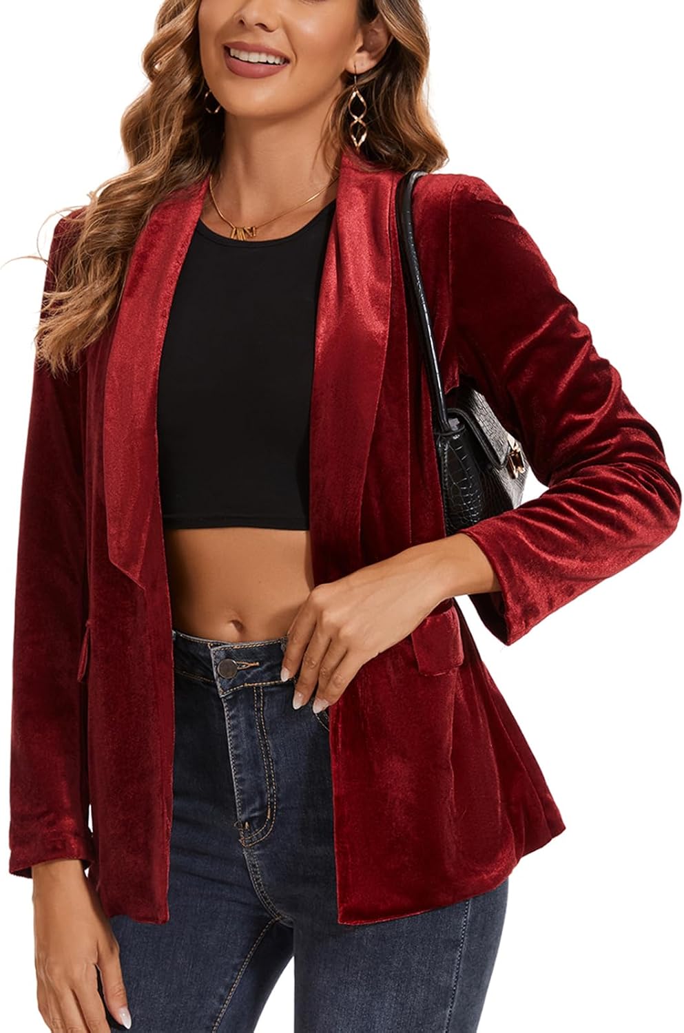 MINTLIMIT Women’s Velvet Blazer Lightweight Long Sleeve Jacket Shawl Lapel Open Front Casual Blazers with Pockets