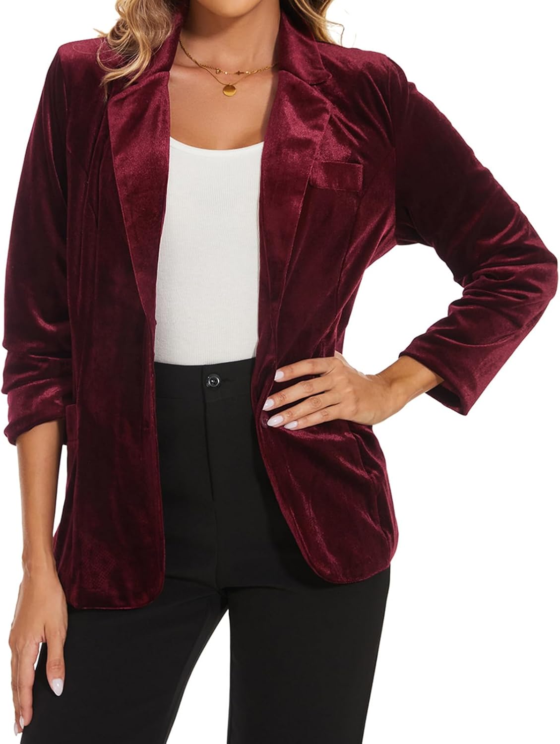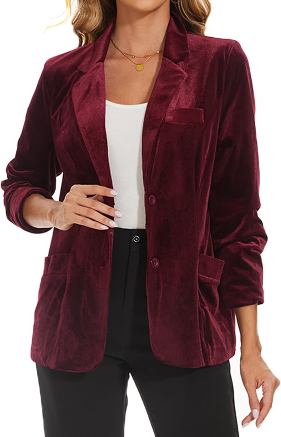 MINTLIMIT Womens Velvet Blazer Suit Jacket Casual Work Office Long Sleeve Fully Lined Blazer Jacket with Pocket Outerwear
