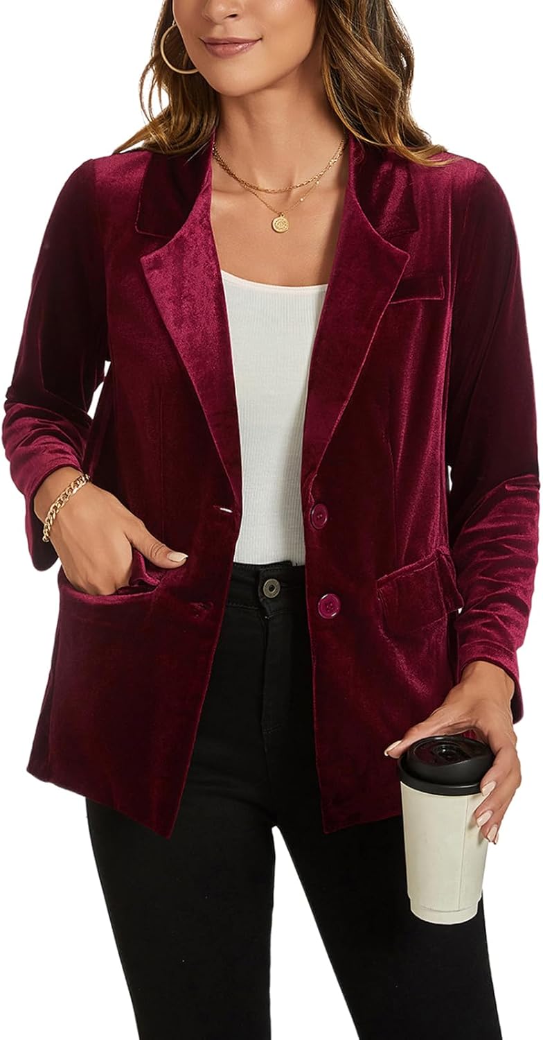 MINTLIMIT Velvet Blazer Jacket for Women Long Sleeve Lapel Pocket Blazers Velvet Blazer