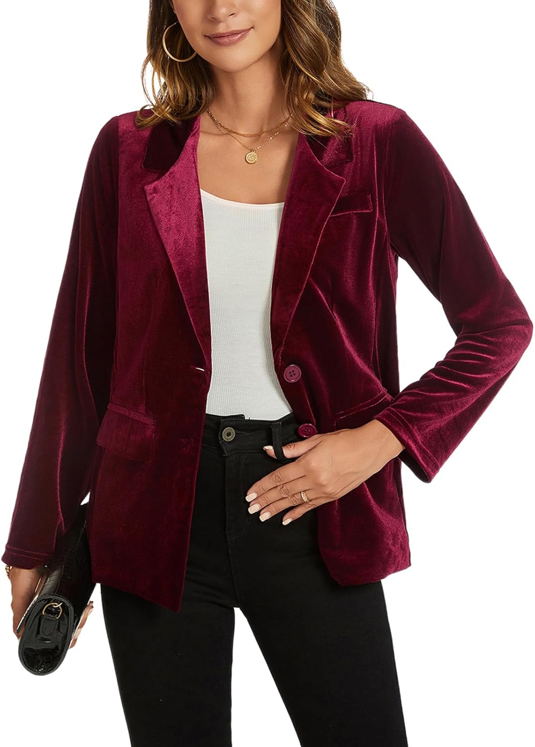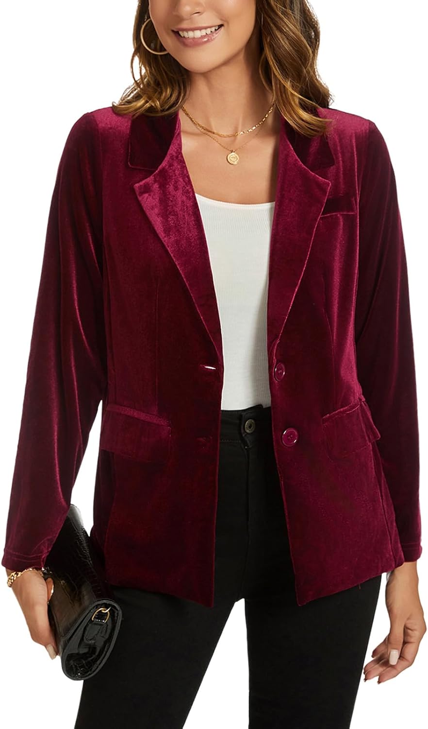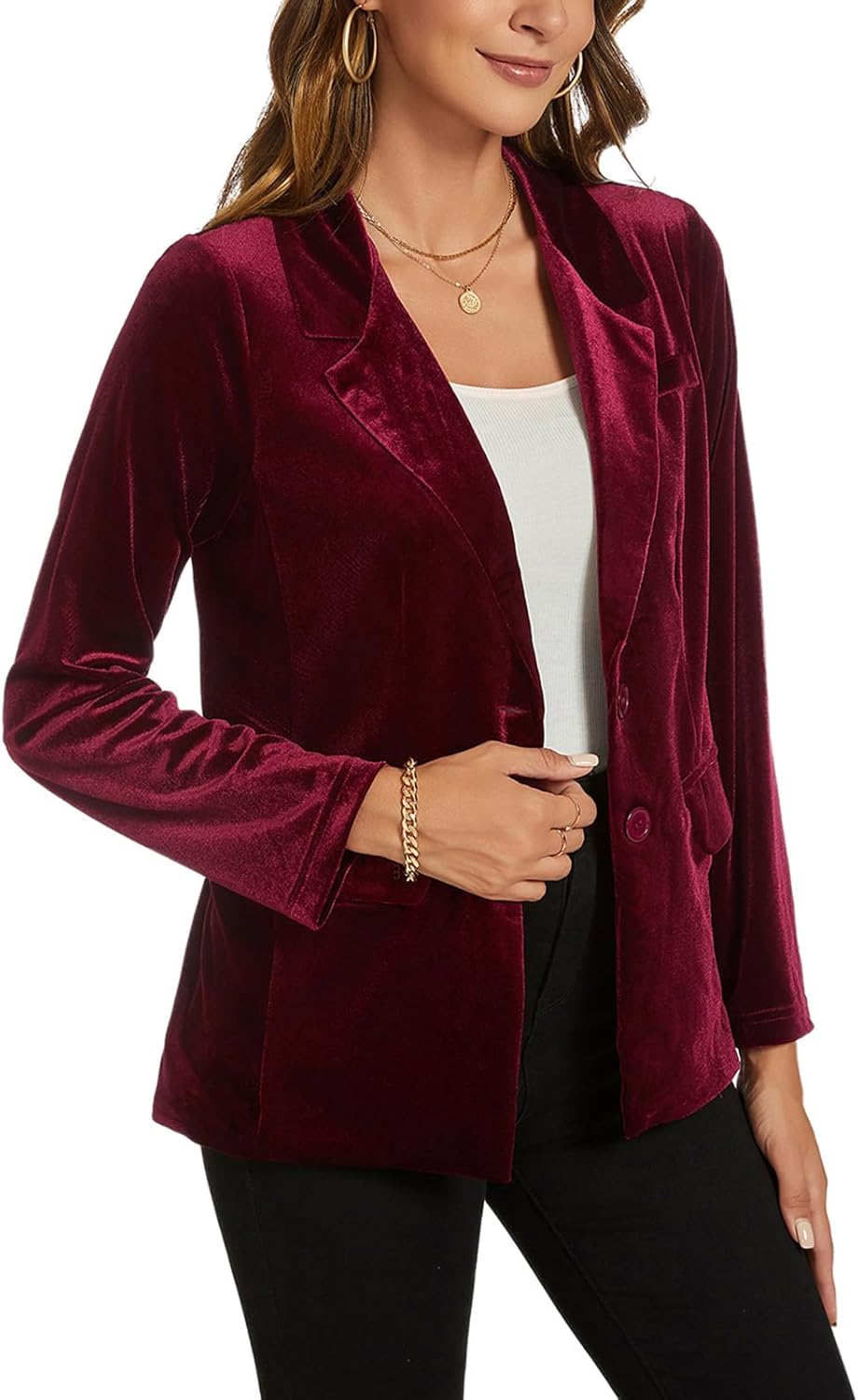 MINTLIMIT Womens Velvet Blazer Suit Jacket Long Sleeve Notched Lapel Button Coat Work Office Blazer Jacket with Pockets