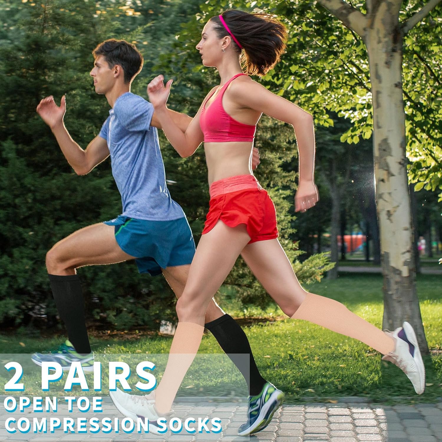 Open Toe Compression Socks 15-20 mmHg for Women and Men Knee High Toeless Circulation Compression Stockings