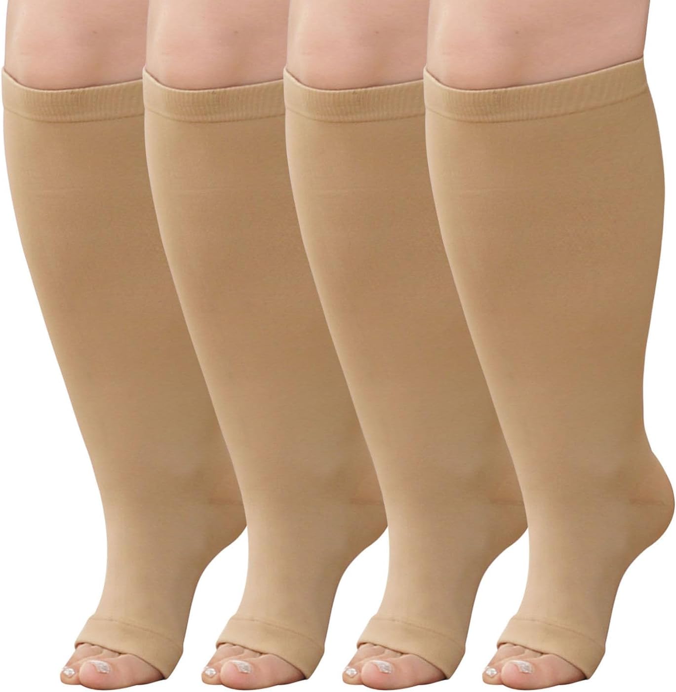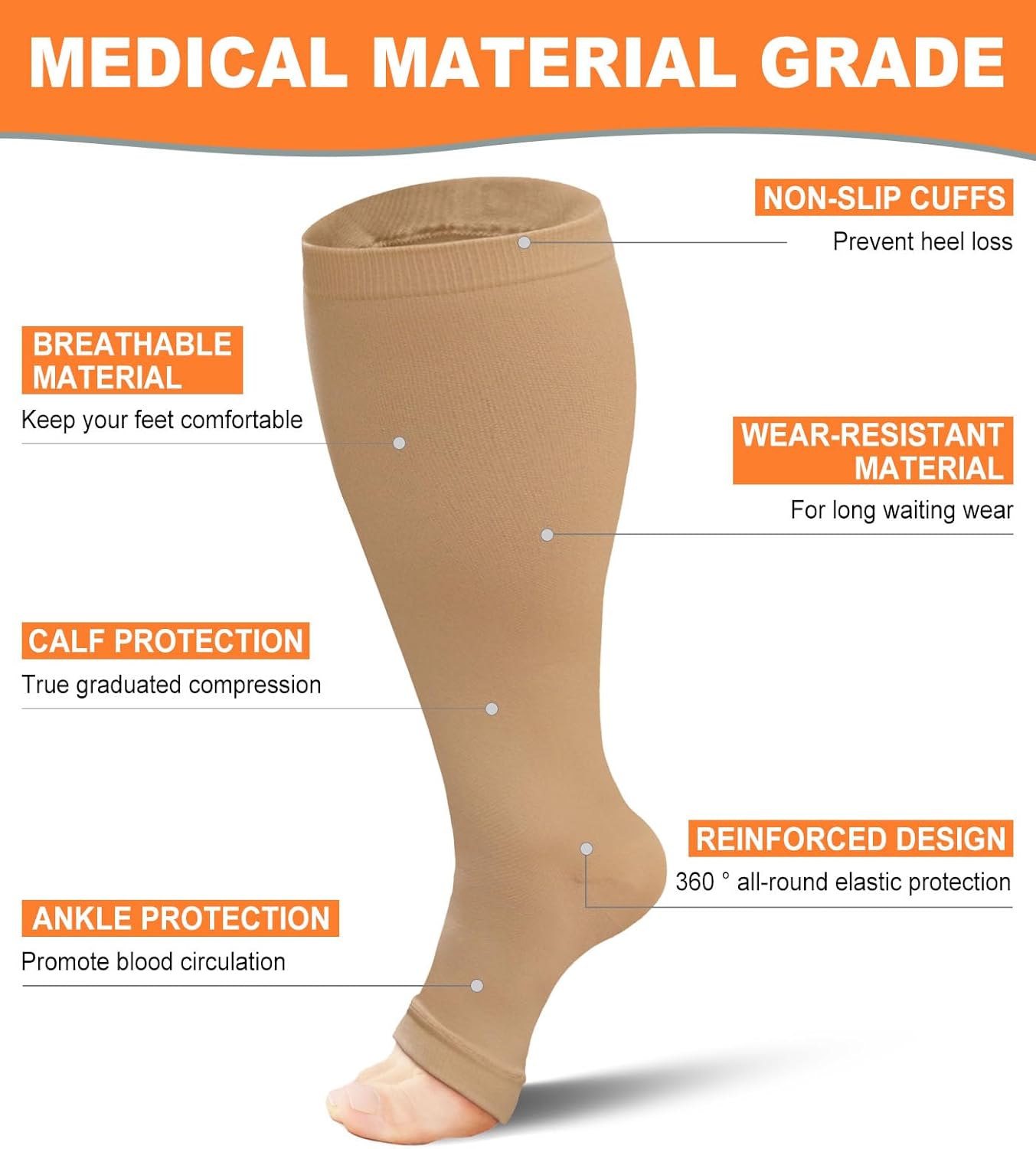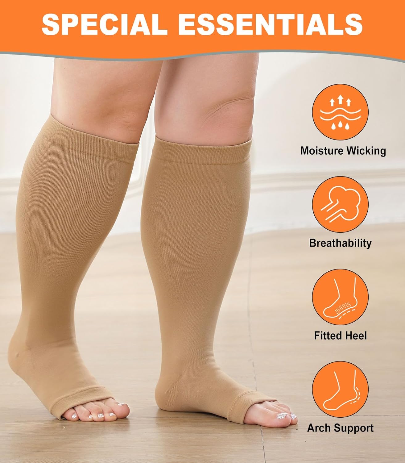 Plus Size Compression Socks: Wide Calf Toeless Stockings for Men Women – Open Toe 20-30 mmHg Compression Hose Support for Travel Nurses