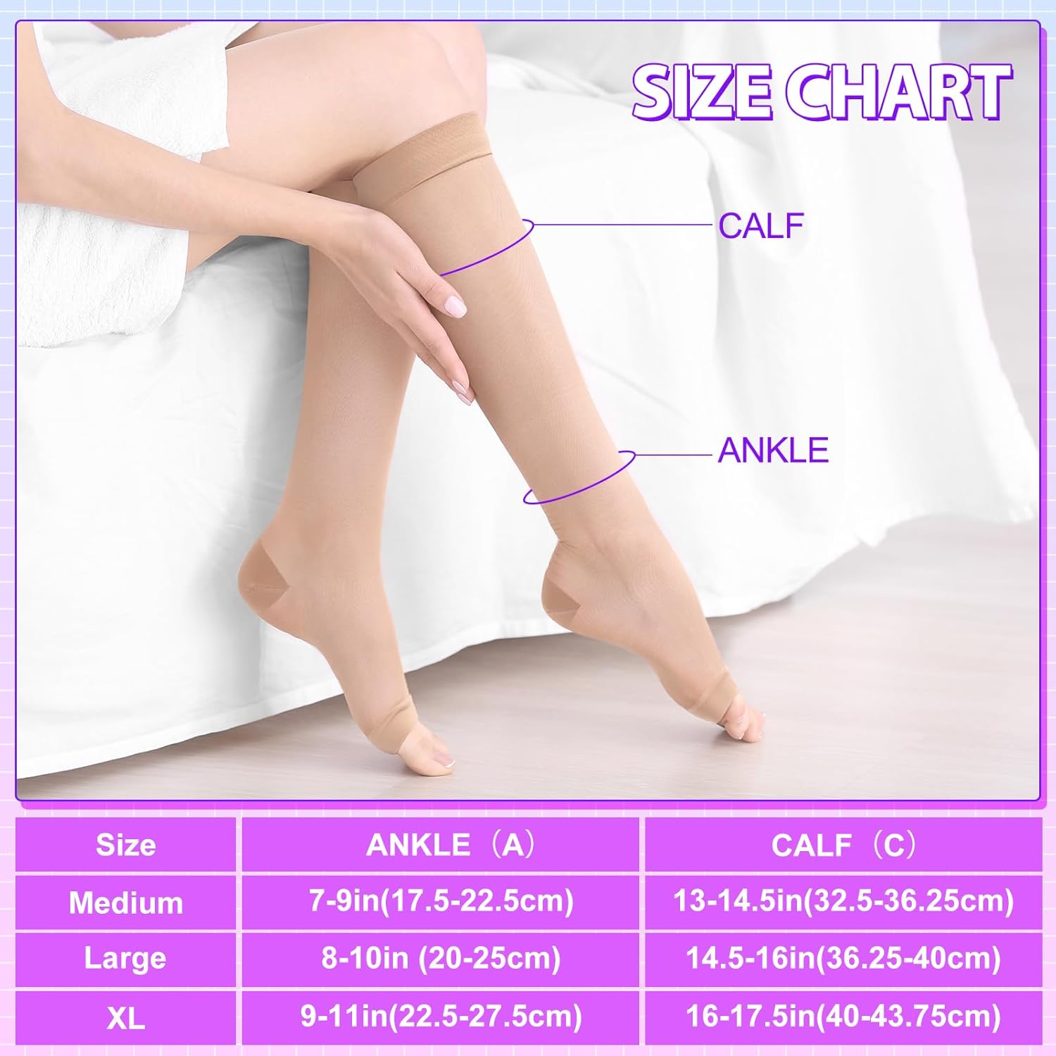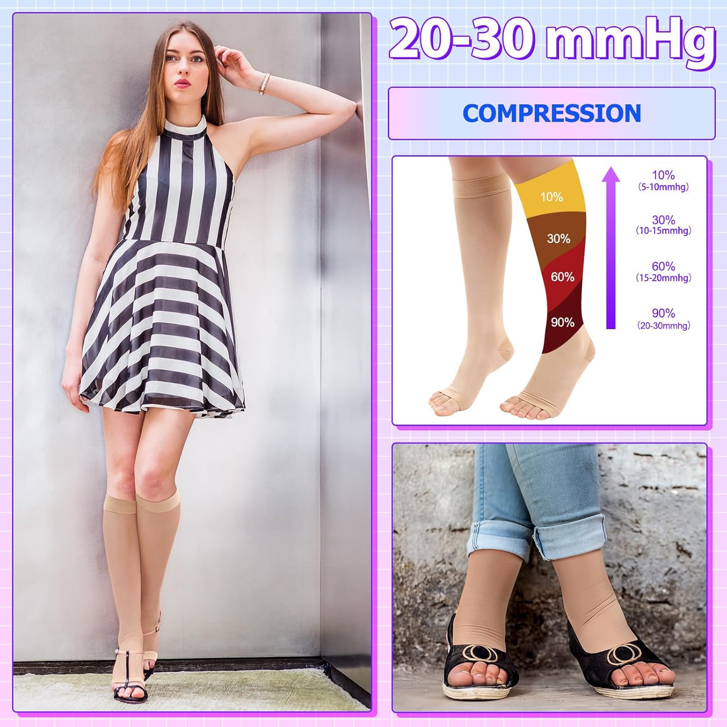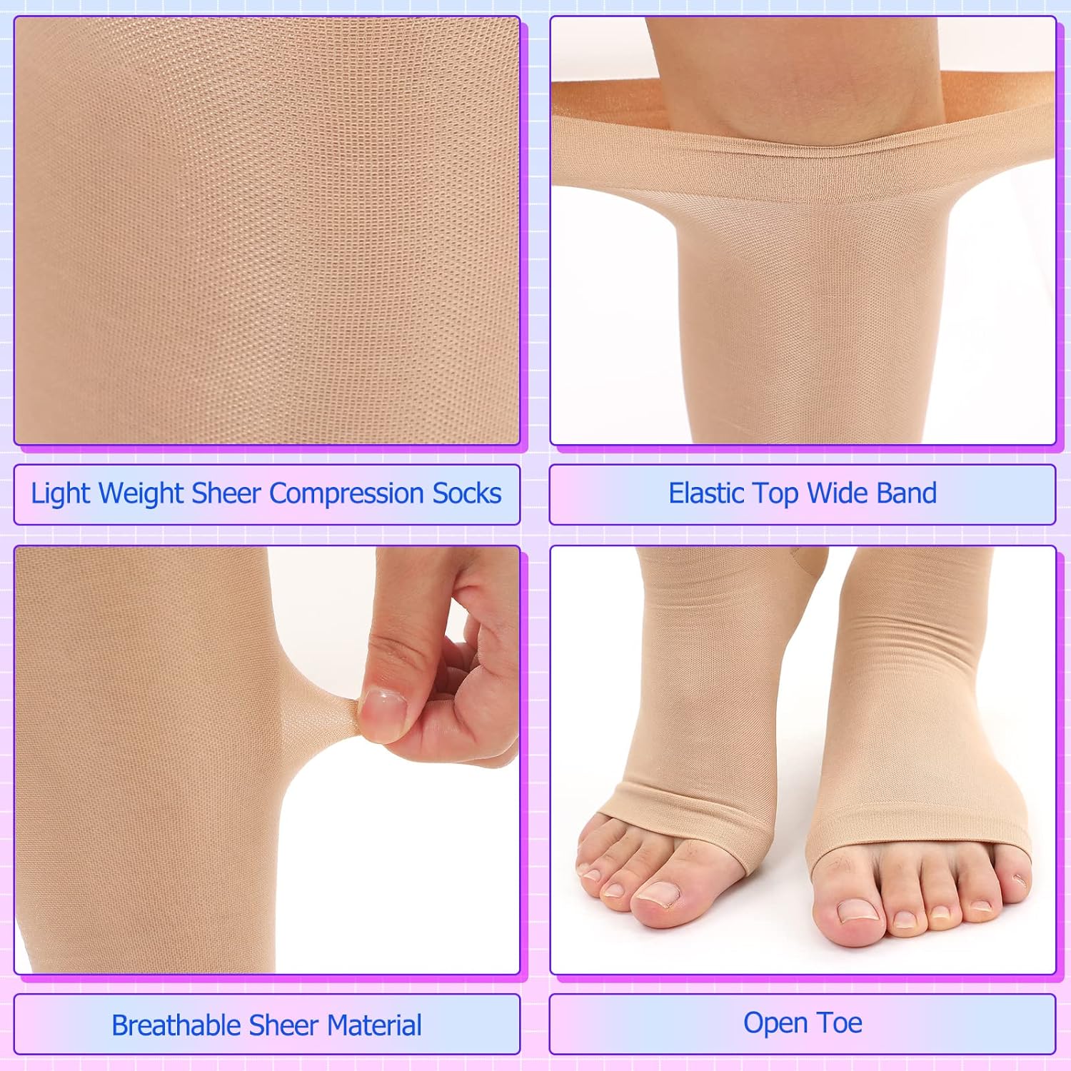 Shellwei 3 Pairs Sheer Compression Socks 20-30 Mmhg Sheer Compression Stockings Lightweight Open Toe Socks for Women Edema