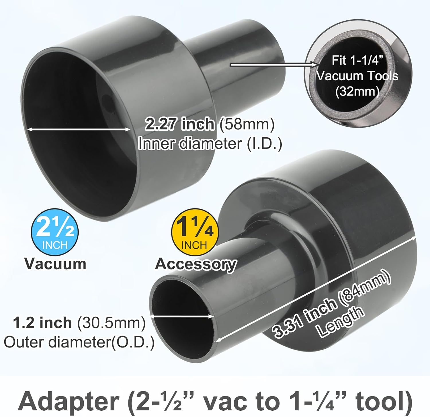 Vacuum Adapter for 2-1/2″ Shopvac wet dry vacuums and 1-1/4″ accessories