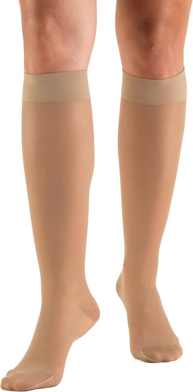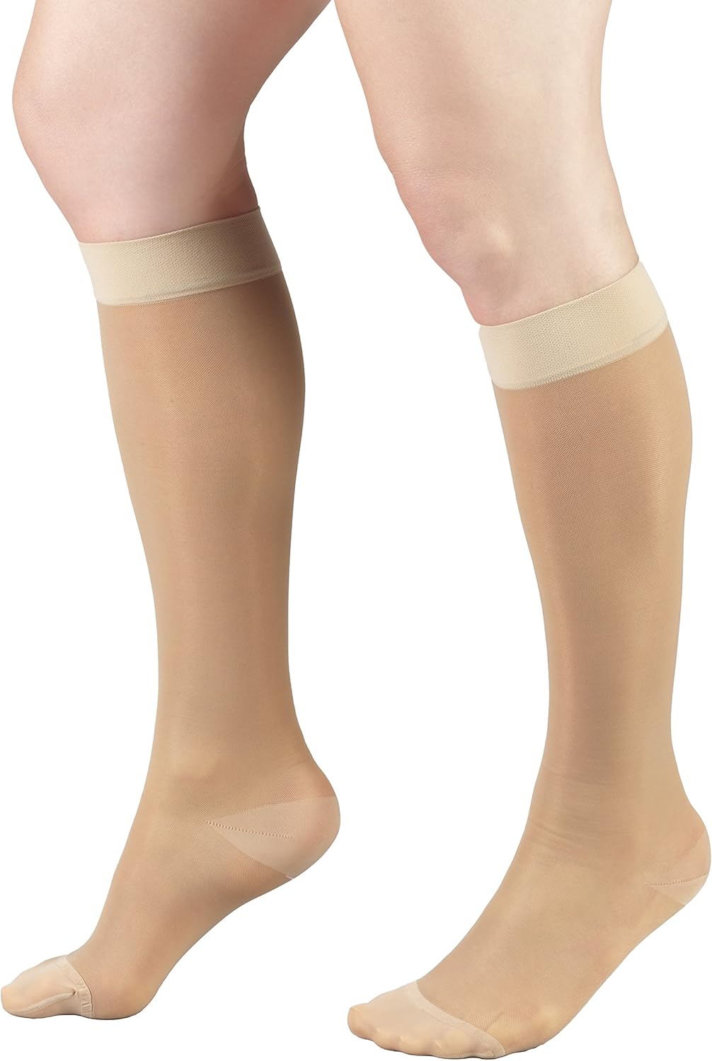 Truform Sheer Compression Stockings, 15-20 mmHg, Women’s Knee High Length, 20 Denier, Light Beige, Medium