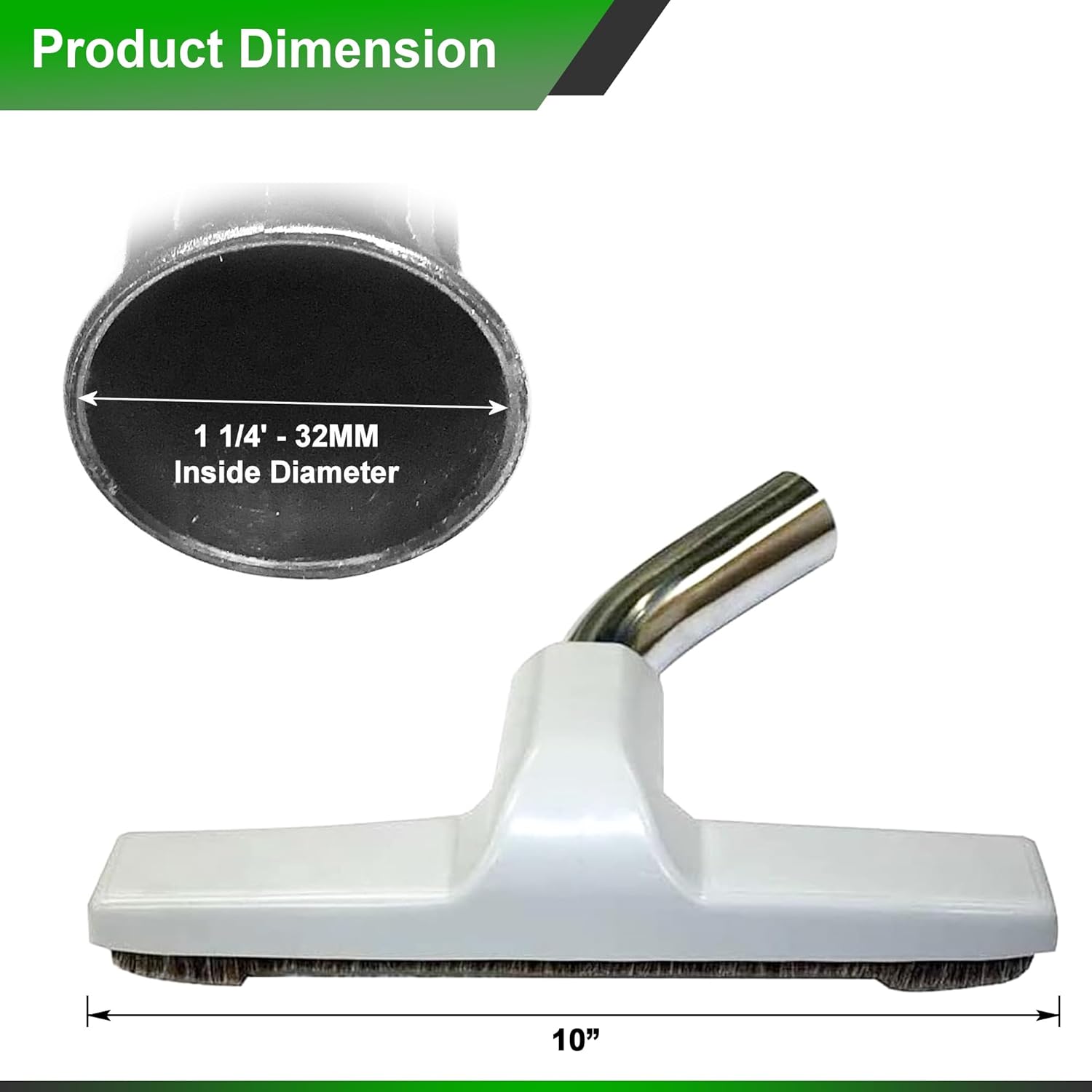 Upgraded Vacuum Floor Brush for Eureka & Universal Vacuum Cleaners with 1 ¼ inch (1.25”) (32mm) Inner Diameter with Horse Hair Soft Bristles 10” Wide (White – Metal)