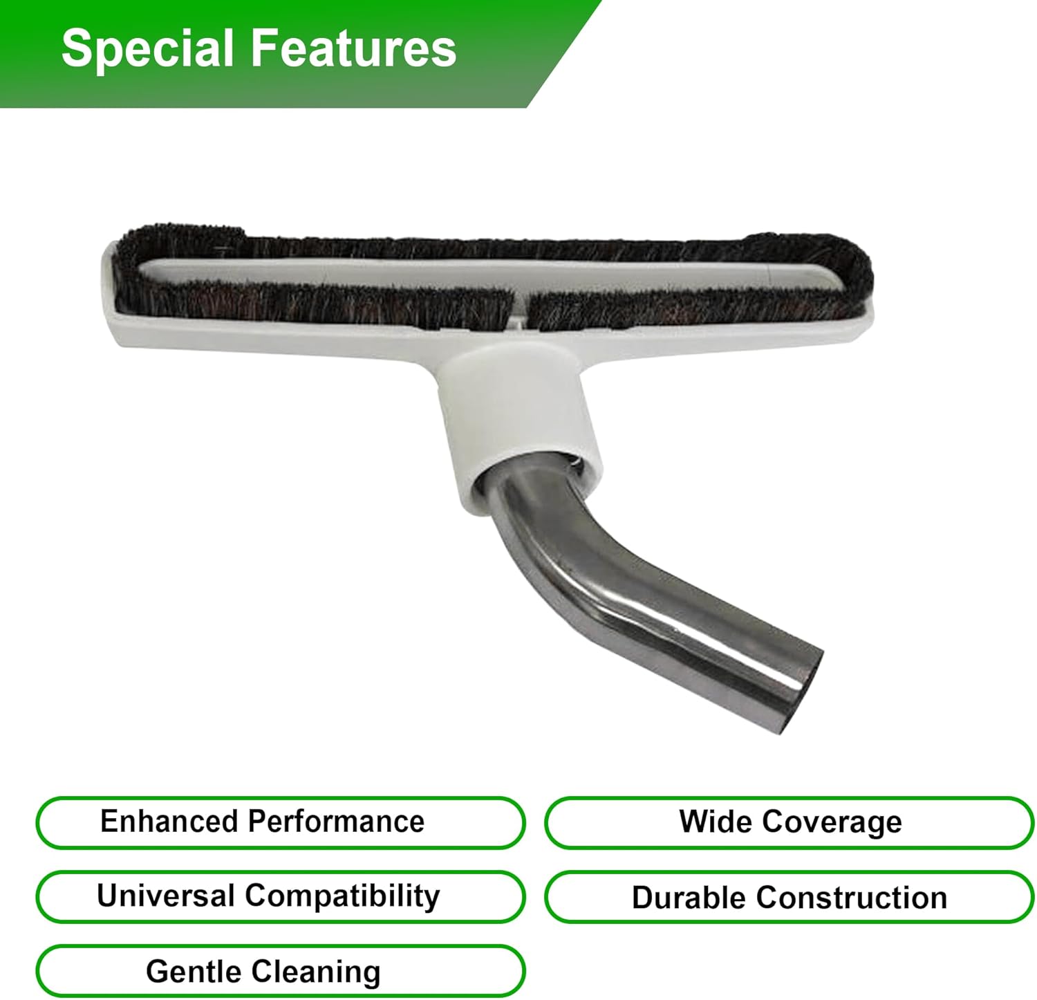 Selgo Replacement Hardwood Floor Brush With Metal Curved Swivel Elbow With Soft Horsehair Bristles, For Eureka And Universal Vacuum Cleaners With 1 and 1/4 Inch Wand Size Opening (1.25 Inch) (32mm) 10 Inch Wide Cleaning Path.