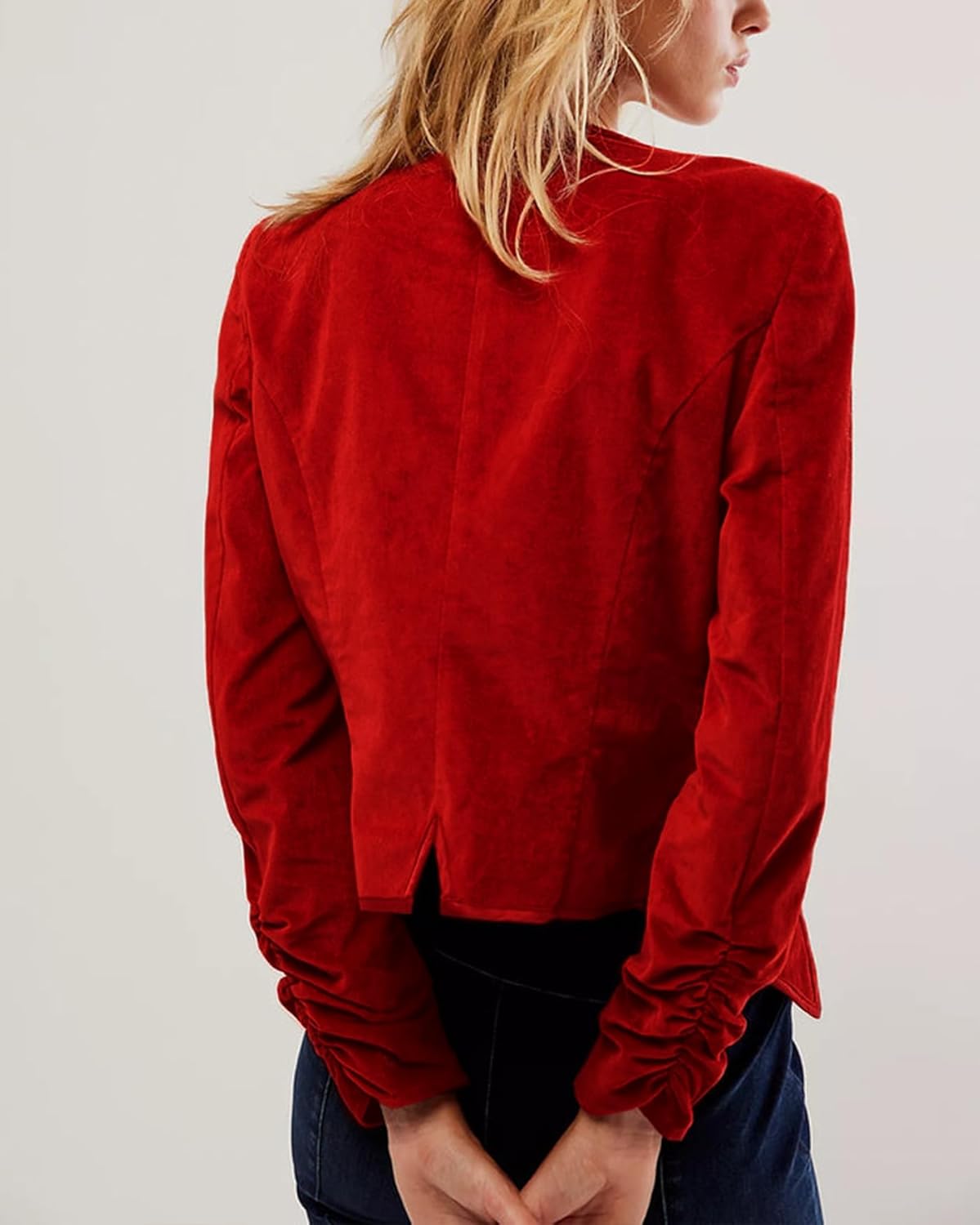 Women’s Velvet Blazer Jackets Long Sleeve Collarless Pocket Blazer Suits Outfits
