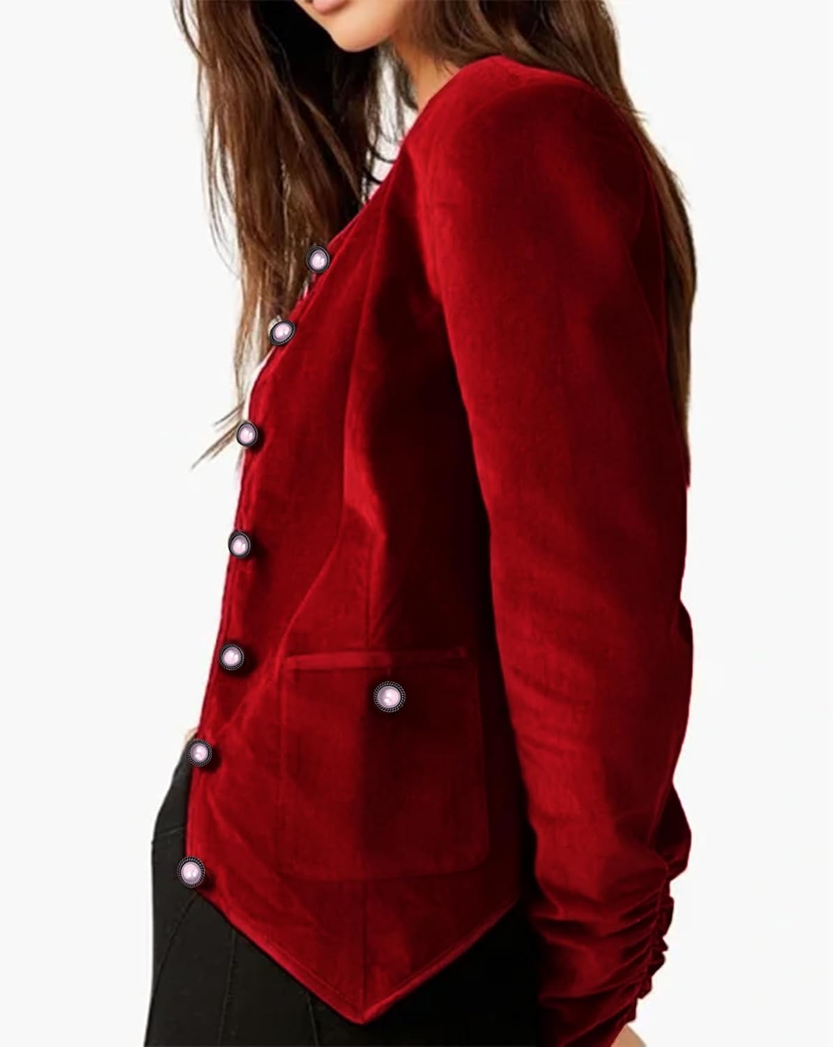 Women’s Long Sleeve Buttons Office Croped Velvet Blazer Jacket with Pocket