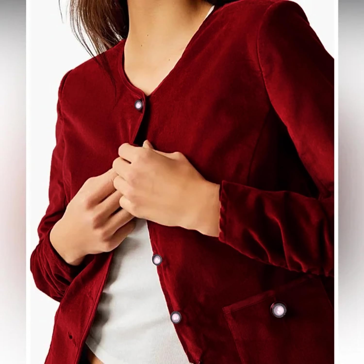 Be the first to review “Women Crop Velvet Blazers Jacket Scoop Neck Button Up Velour Jackets Long Sleeve Velvet Coat”