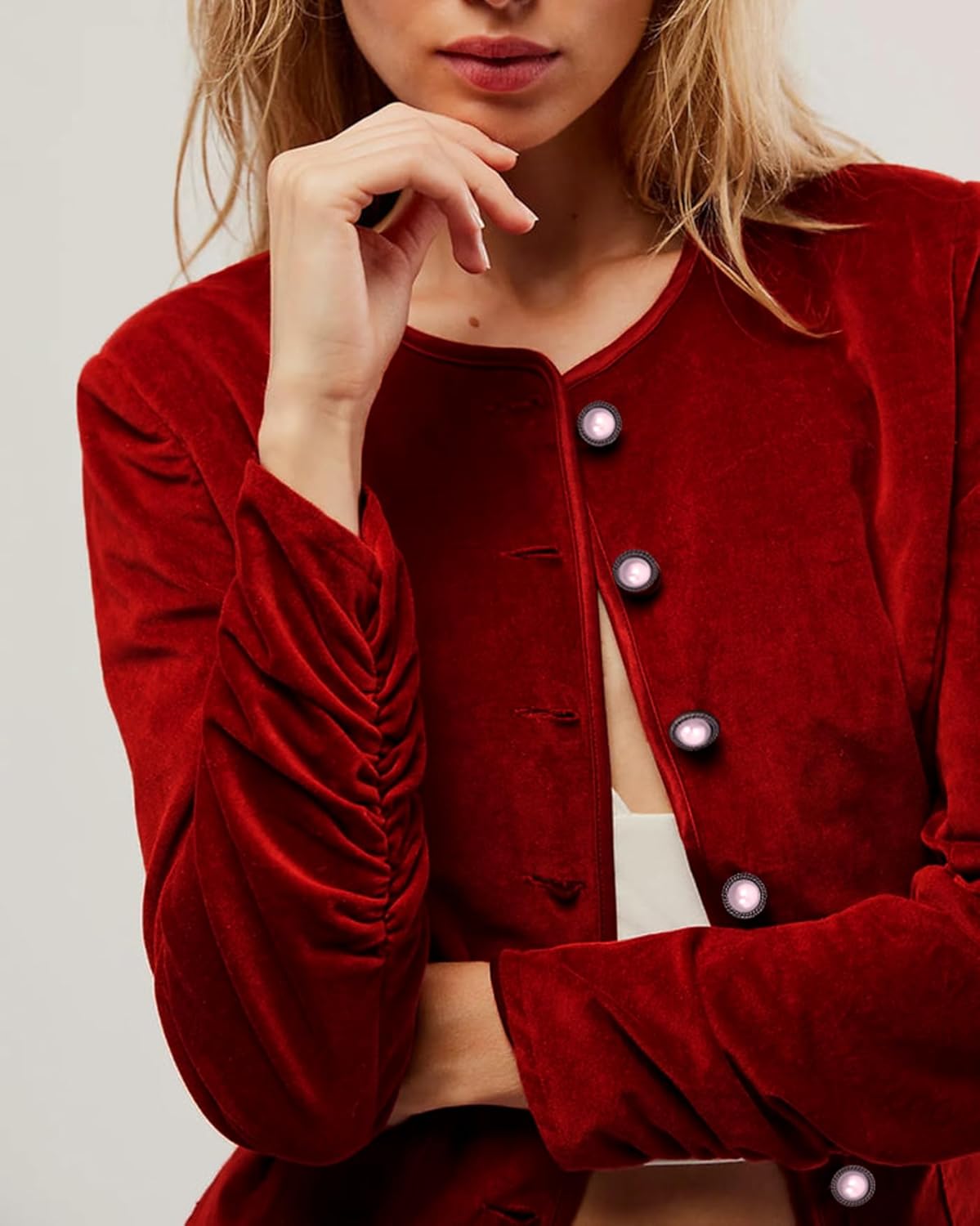 Women Crop Velvet Blazers Jacket Scoop Neck Button Up Velour Jackets Long Sleeve Velvet Coat