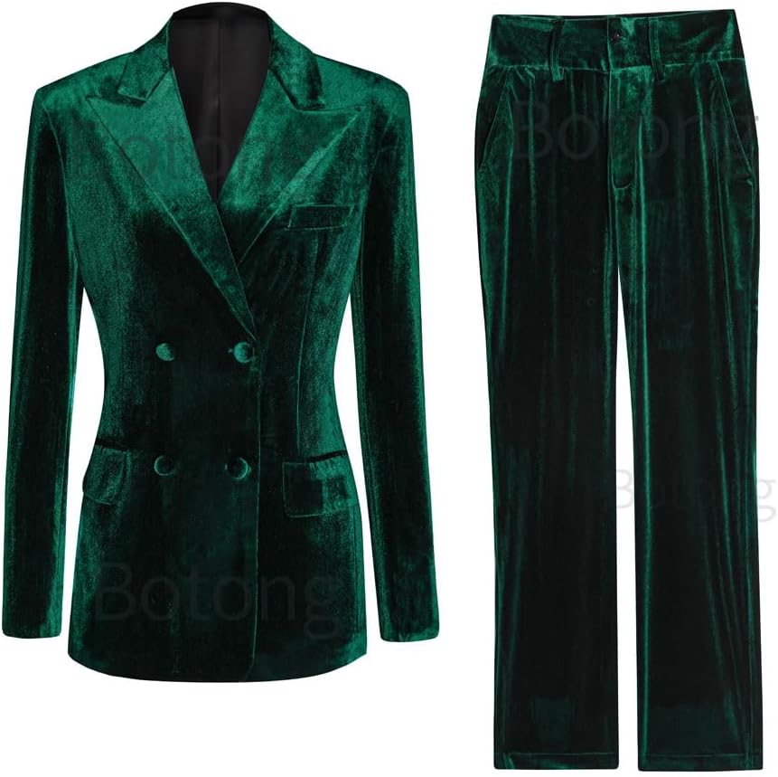 Women’s Velvet Suit 2-Piece Set Elegant Double Breasted Velvet Pant Suit
